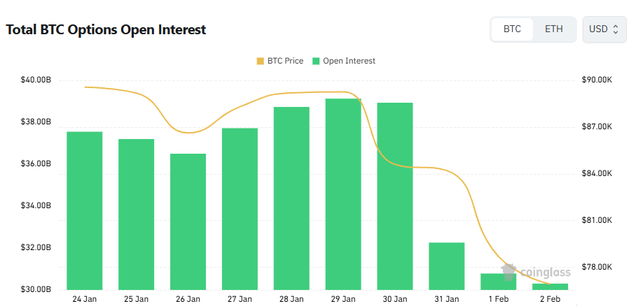 杠杆清理期:在四天内发生了超过50亿美元的爆仓。2月1日,当比特币短暂跌破76,000美元时,发生了22亿美元的爆仓。资金费率转为负值,显示多头已投降。宏观压力:市场担忧美国政府停摆。中东紧张局势升级。比特币ETF出现资金外流。黄金和白银同步下跌,打破了比特币的避险叙事。分析师目前预期比特币将在7万至7.5万美元区间见底,最坏情况下可能接近5.6万美元,这对迈克尔·塞勒的比特币收购论点构成了关键的压力测试。