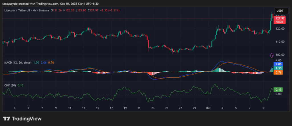 莱特币上涨8%,当前交易价格为127美元。LTC交易量激增逾178%。