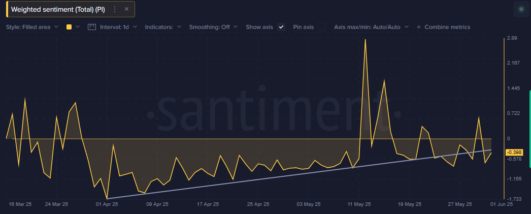 随着投资者情绪持续走低,加密货币市场在日益加重的看跌压力下不断下滑。在此背景下,PI价格虽未跟随整体下跌趋势,却面临着独特的抛售压力。
