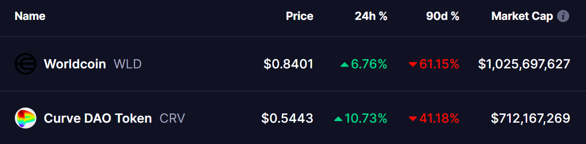 2025年4月1日,加密货币市场以看涨态势开启了第二季度,以太坊(ETH)今日涨幅超过4%,显示出在第一季度长期低迷后可能出现趋势转变。随着市场整体情绪逐渐转向积极,Worldcoin(WLD)和Curve DAO Token(CRV)等替代币也开始显示出上涨动能,今日均录得显著涨幅。