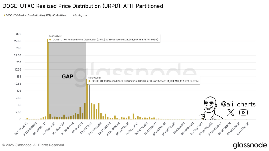 Glassnode数据显示,0.19美元与0.07美元之间存在实际价格缺口,该区间链上活动有限。0.199美元和0.0739美元附近的价值集群表明重要价位集中,若突破当前区间可能加剧波动性。
