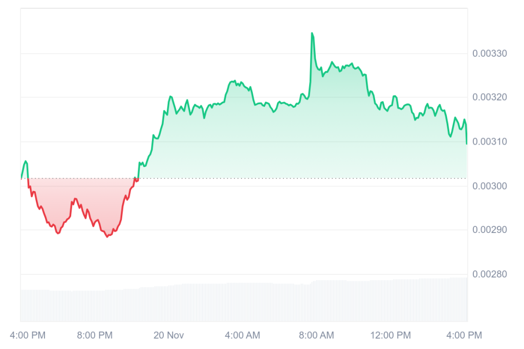 下一个关键考验是0.003334美元的7日移动均线,有效突破可能推动上涨动能,反之或将回落至0.002774美元。