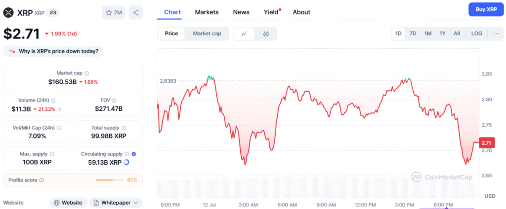 截至发稿,CoinMarketCap数据显示$XRP现报2.78美元,24小时交易量高达160亿美元,总市值1642亿美元位列加密货币第三。这些指标印证了市场对其突破行情的强烈共识。