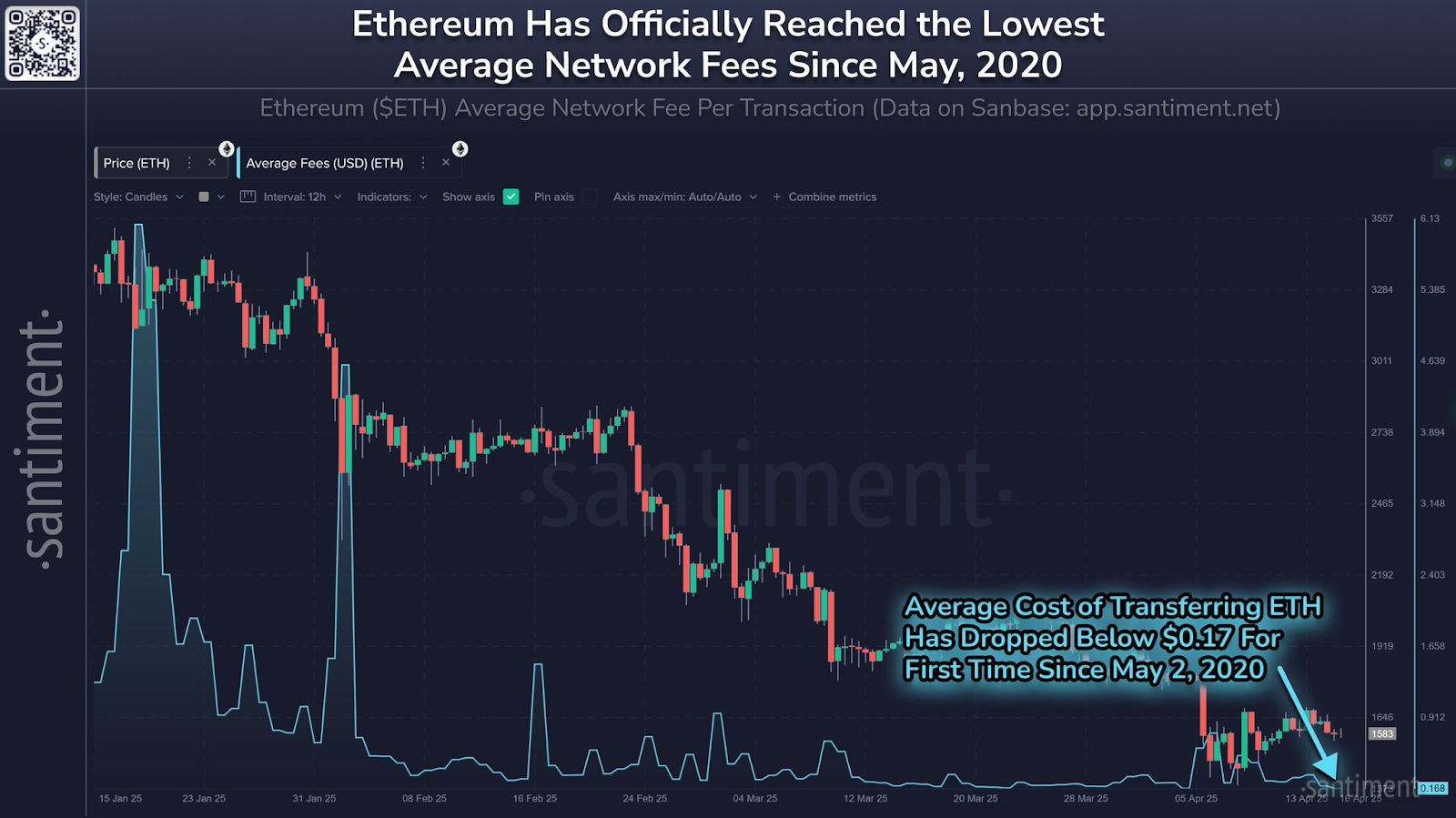 根据Santiment的数据,以太坊网络的平均交易费用已降至0.168美元,这是自2020年5月以来的最低水平。同一天,网络的日均交易成本也创下了五年来的最低纪录。这一下降可能为用户和开发者提供了一个重要的信号。