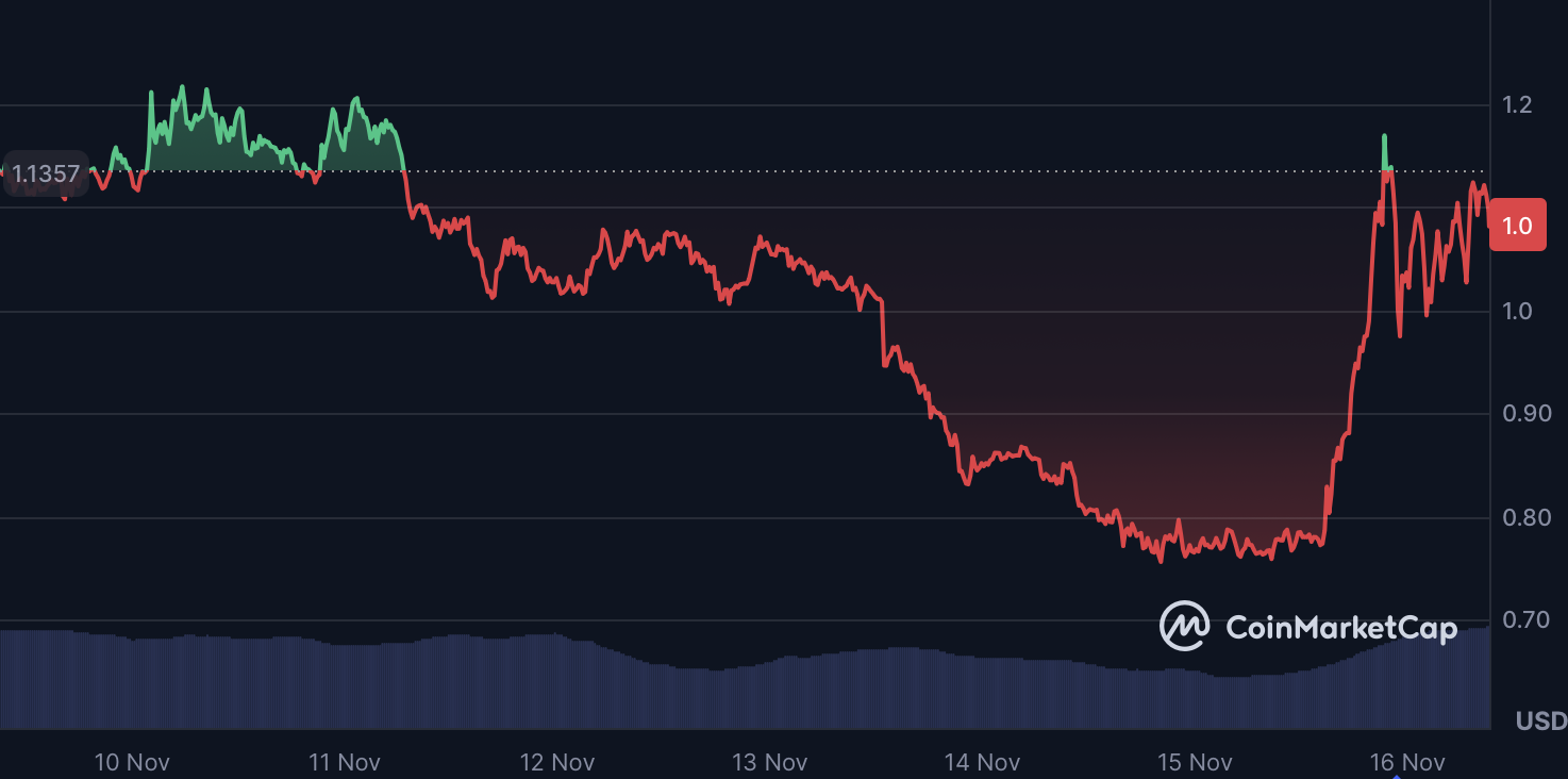 Pieverse本周表现最为亮眼,在11月14日同步登陆币安Alpha和币安期货后,24小时内飙升130%。40倍杠杆的永续合约点燃投机热情,流动性计划进一步放大关注度。