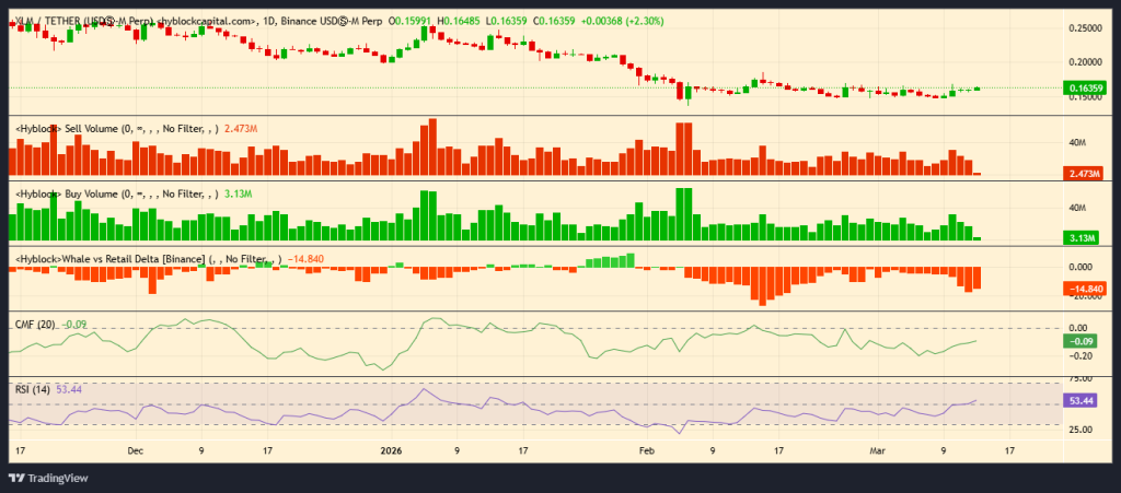 本周,XLM价格悄然启动复苏,在一系列看涨日线蜡烛图的推动下攀升至0.163美元附近。虽未出现爆发式上涨,但相比此前疲软的价格走势,市场情绪已明显转向。