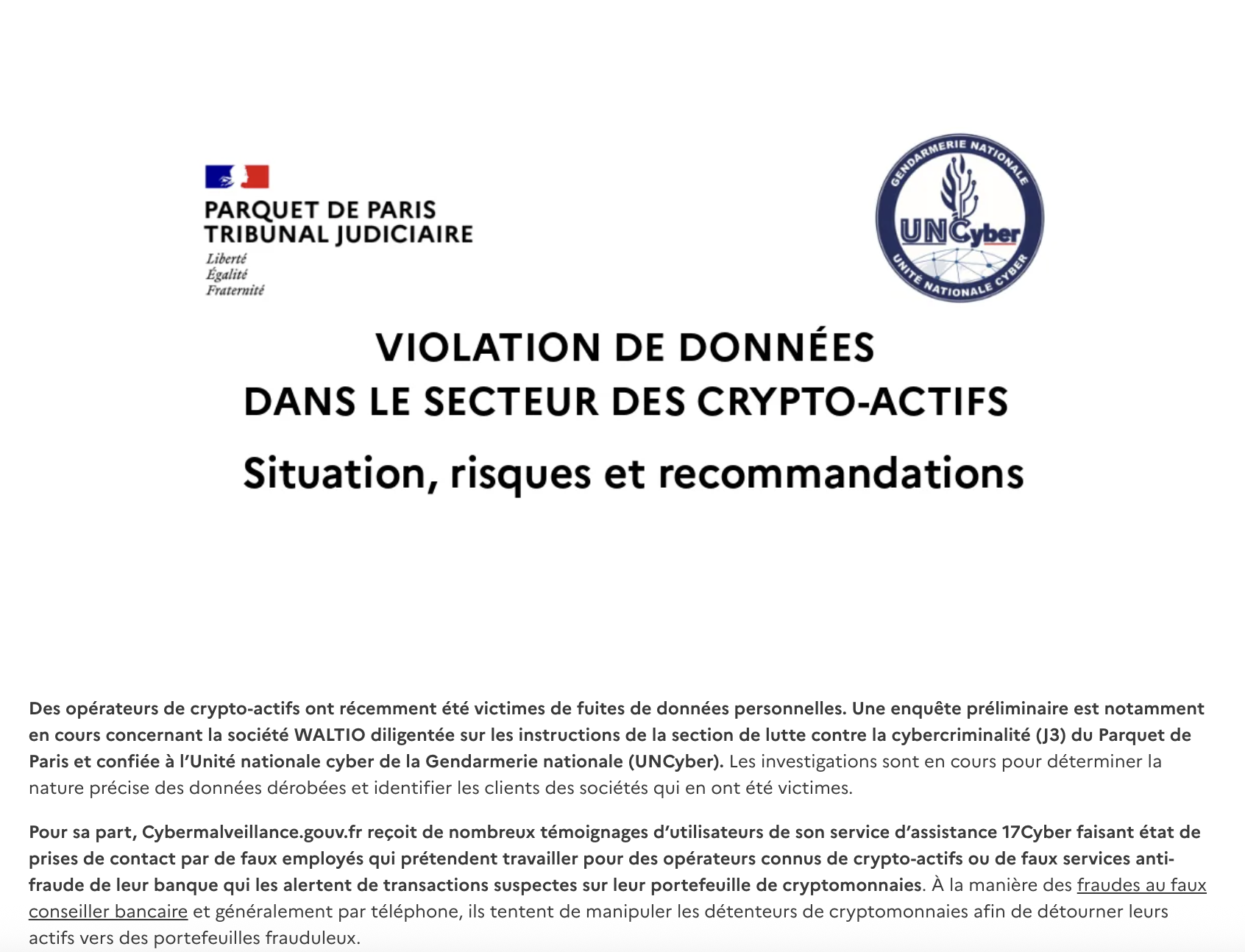 法国有关部门已针对加密货币税务平台Waltio可能泄露用户个人数据的违规行为启动初步调查。