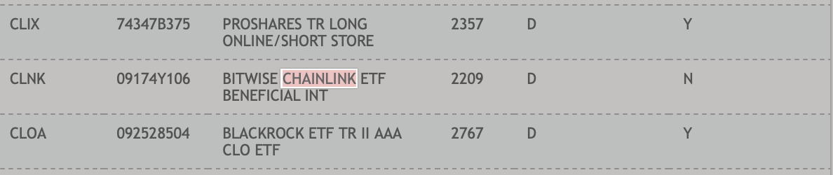 负责美国证券清算结算的DTCC维护着"活跃及预上市"ETF名单,这个程序性阶段通常出现在正式推出之前。CLNK出现在该名单上表明,Bitwise已完成必要的运营准备,只待监管机构批准即可推出该基金。