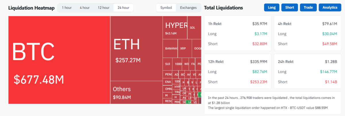 过去24小时内,比特币和以太坊价格的急剧上涨导致空头仓位遭遇大规模清算。在市场乐观情绪达到顶峰之际,押注市场下跌的交易者因价格突破关键水平而面临巨额亏损。