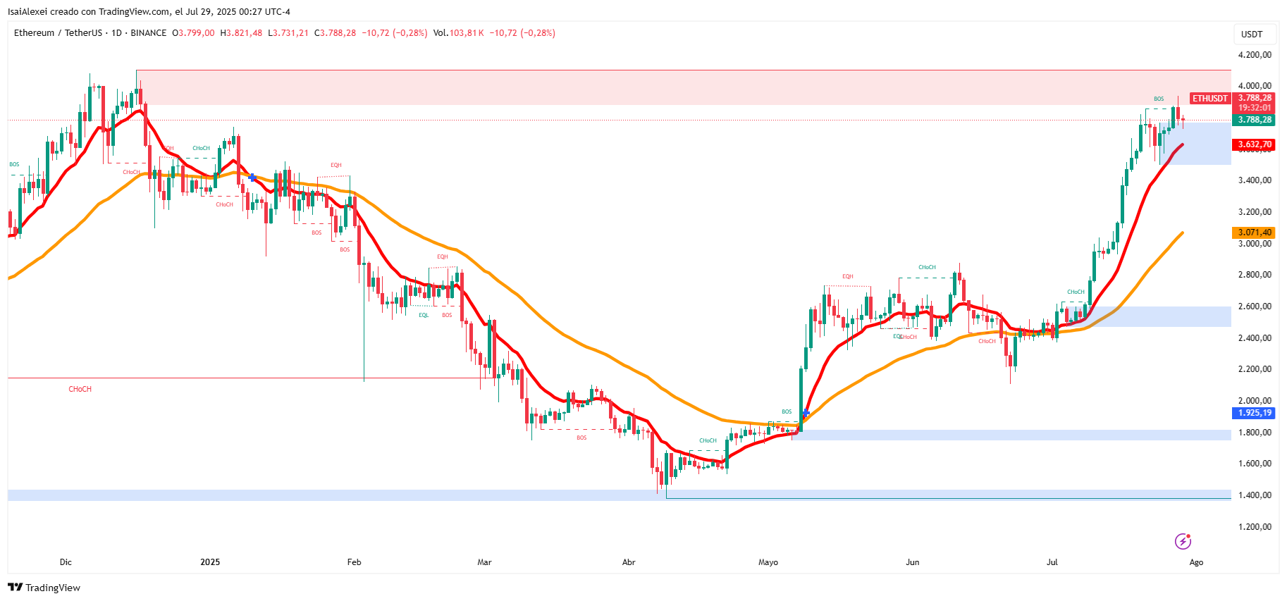 此外,期货数据暗示ETH可能很快试探4,000美元关口,但技术分析师指出4,100-4,500美元区间存在阻力。PayPal宣布将为美国商户开通ETH支付,可能加速主流应用进程。不过部分分析师警告短期超买风险,认为持续突破前可能出现回调。