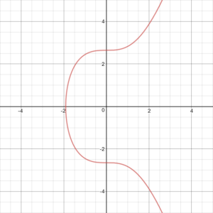 正如你所见,椭圆曲线关于x轴对称。因此,如果从曲线上的一个随机点开始画一条直线,这条直线最多会在三个点与曲线相交。你通过前两个点画一条线,并确定这条线与第三个点的交点。接下来,你将第三个点关于x轴反射(因为对称),这个点就是前两个点相加的结果。