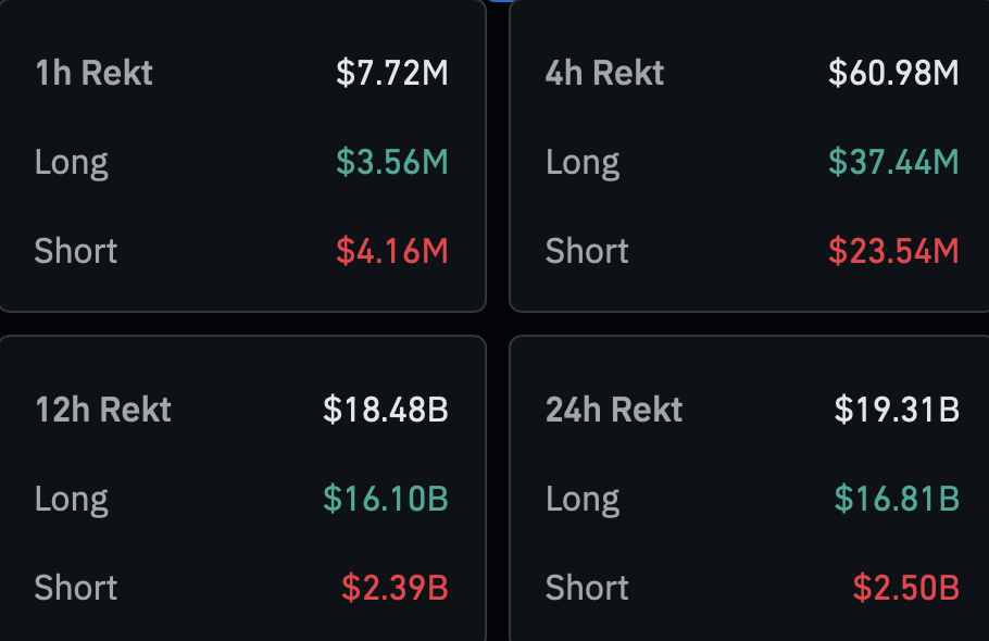 市场反应极其迅速。Hyperliquid数据显示,交易所24小时内累计平仓杠杆头寸超过193亿美元,波及166万名交易者。其中一笔价值2.03亿美元的ETH-USDT合约平仓成为当日最大单笔爆仓。