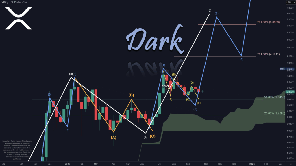 随着XRP价格今日强势反弹,多位分析师在加密推特上分享了其最新研判。分析师Dark Defender在推文中发布图表指出,该币种已完成"第四浪"调整,目前正处于"第五浪"阶段,且"该浪型仍可能实现两位数涨幅"。这一观点强化了市场对XRP短期内突破10美元的乐观预期。