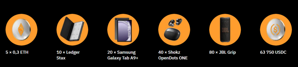 Ledger、三星和JBL都是知名品牌。与纯粹的USDC不同,这些奖品创造了更具吸引力的使用场景:新交易者可能想象收到一台Ledger Stax(高端硬件钱包)来保护自己的加密资产。