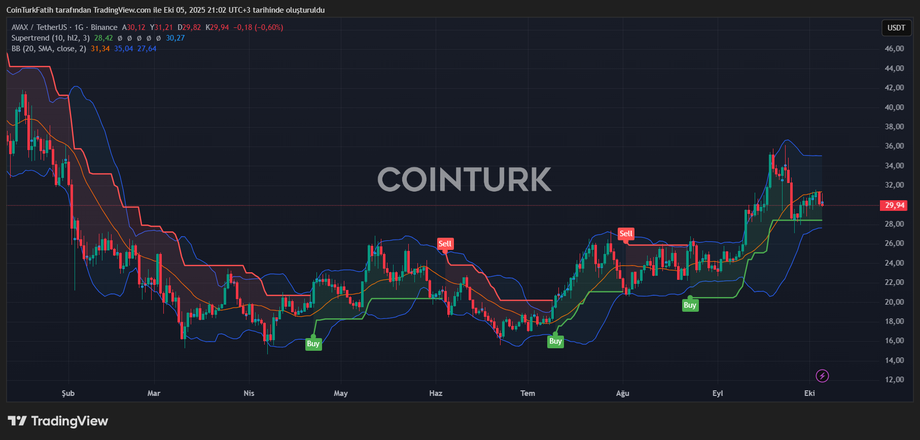 若29美元支撑位失守,AVAX可能短暂下探27美元,但乐观情境下预计将重返32美元关口。
