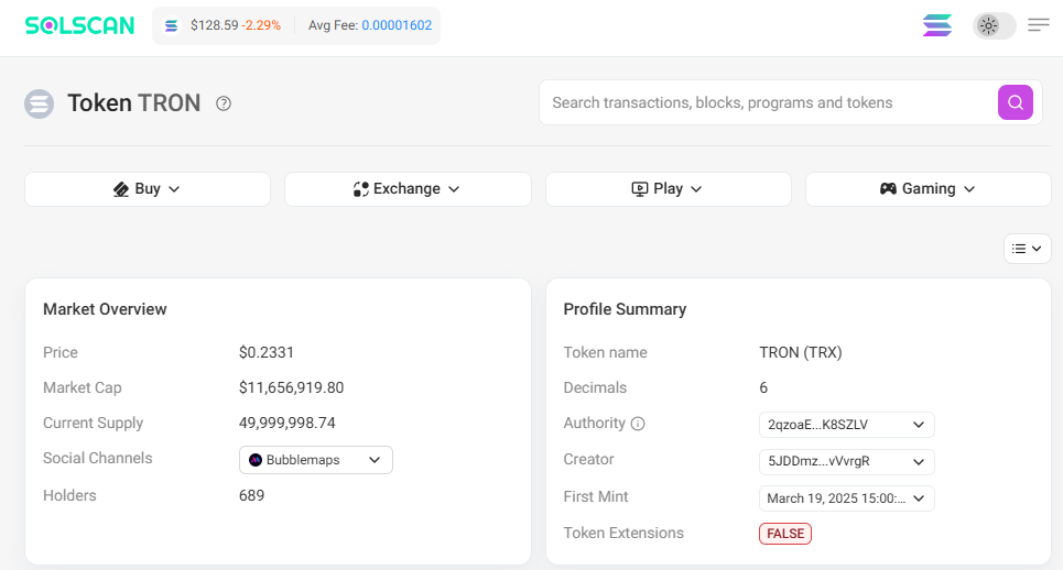 TRX现已在Solana网络上开放交易,合约地址为GbbesPbaYh5uiAZSYNXTc7w9jty1rpg3P9L4JeN4LkKc。尽管TRX的流通供应量已达1160万美元,但由于Solana网络强大的DeFi基础设施,它仍可能吸引投资者的兴趣。