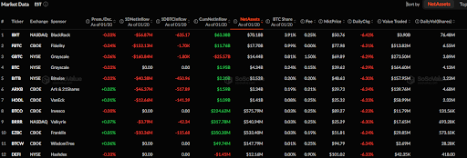 与此同时,部分比特币ETF如VanEck的HODL、景顺的BTCO、WisdomTree的BTCW及Hashdex的DEFI在单日净流入或流出方面均未出现变动。这些基金显示出稳定的趋势,在此期间未录得任何资金流入或流出。