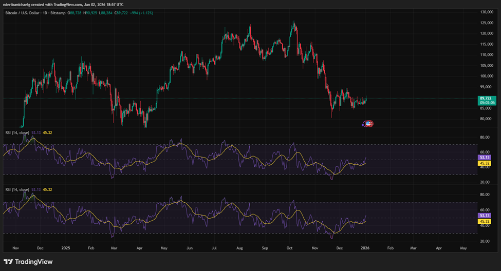 过去两周比特币价格始终在90000美元下方震荡整理,多次尝试突破该阻力位未果。然而如今加密货币已成功站上这一关键位置,或将在2026年初迎来突破性上涨行情。受最近两日看涨势头推动,BTC价格一度飙升至90,925美元高点,这是近两周横盘整理后最具突破潜力的一次尝试。