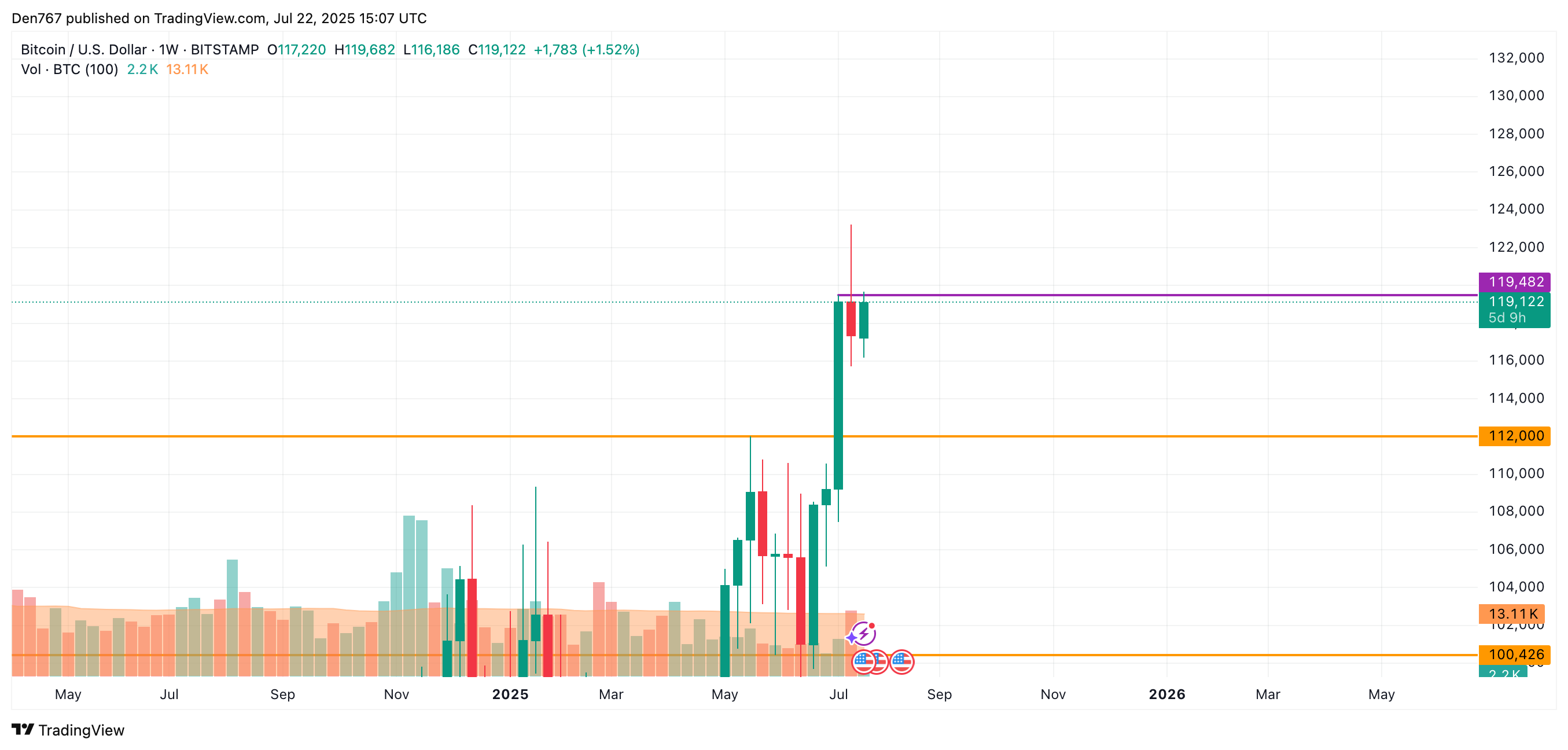 从中期视角分析,投资者应重点关注119,482美元关口的收盘表现。若收盘价接近或高于该水平,则有望延续涨势并挑战历史新高。