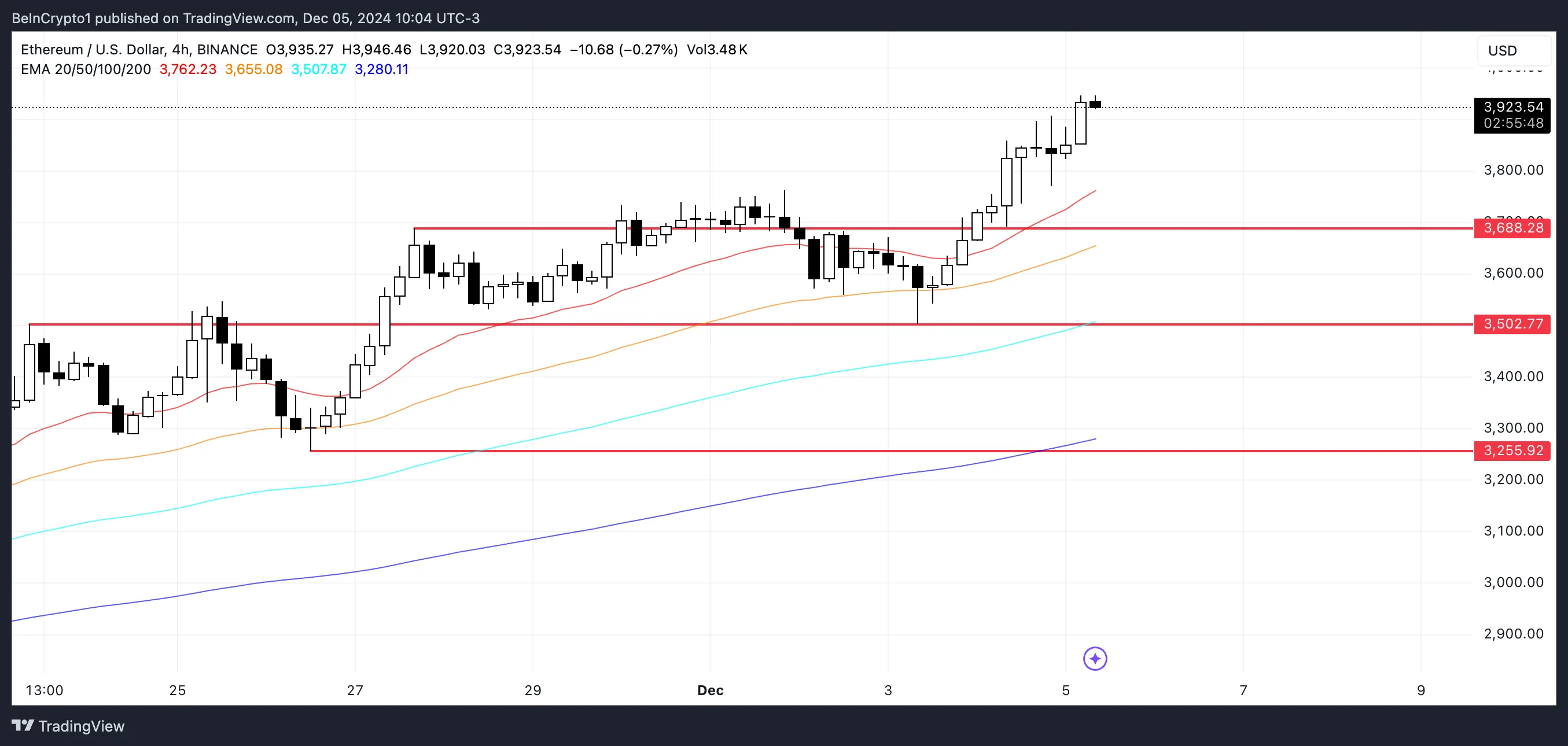 以太坊价格分析:有望突破4000美元大关