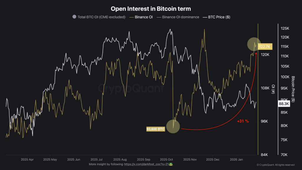 CryptoQuant分析认为杠杆效应放大了下行趋势。该区块链分析公司指出市场普遍存在高杠杆风险敞口,这种杠杆环境为多头头寸创造了脆弱条件。