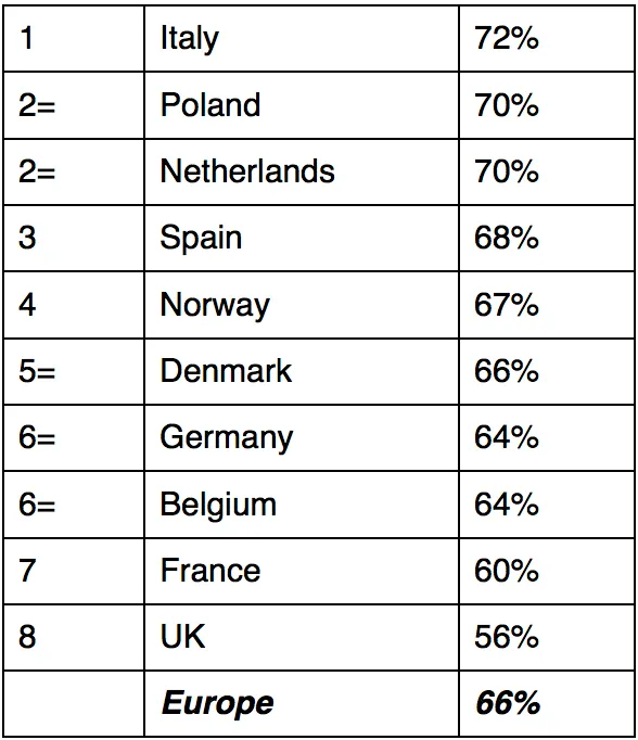 根据比特币交易所bitFlyer Europe对10,000名欧洲公民进行的调查显示,三分之二的欧洲人相信加密货币将在十年后继续存在。今天发布的2020年度加密货币信心指数报告还发现,意大利民众对加密货币的信心最高,达到72%,而英国民众的信心最低,仅为56%。