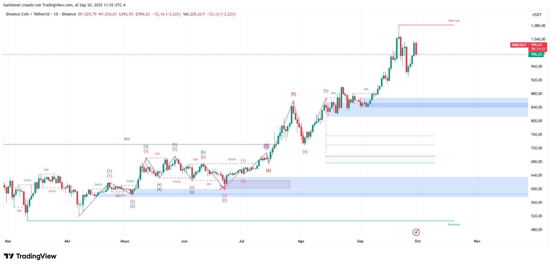技术面显示BNB正围绕934美元斐波那契支撑位震荡,1034美元阻力位与1083美元历史高点形成压力区。分析师警示若跌破932美元可能确认局部顶部,而有效突破1083美元或开启新高征程。
