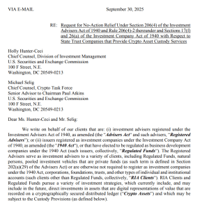 在文件中,SEC投资管理部门明确表示,若投资顾问选择州信托公司作为加密资产托管方,该机构将不会建议采取执法行动。这份文件是对律师事务所Simpson Thatcher & Bartlett致函的回应,该律所此前请求SEC就注册公司为客户托管加密资产时免于执法风险作出保证。