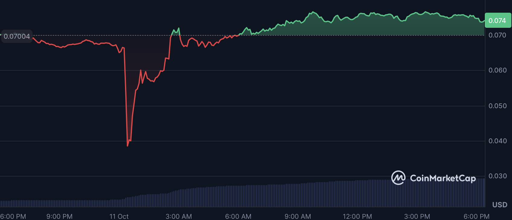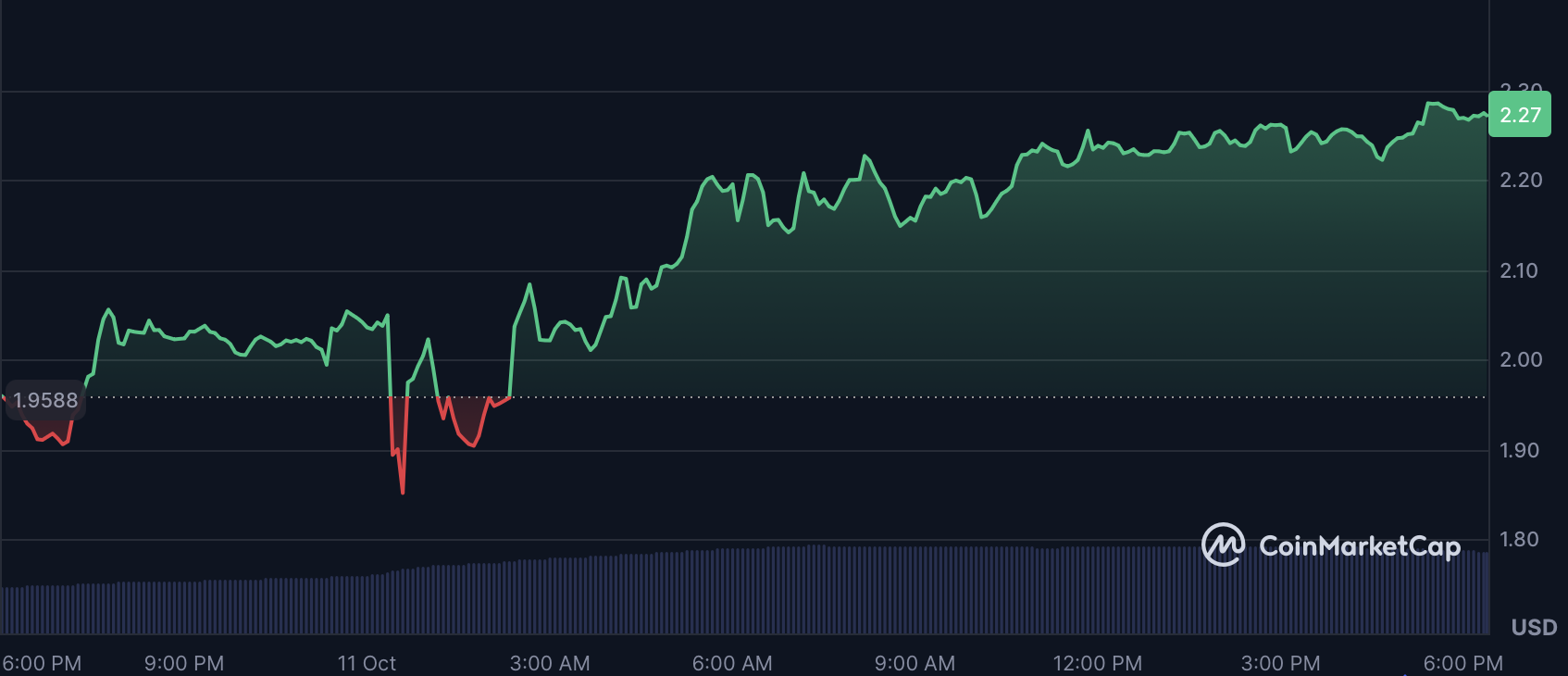 该项目过去24小时上涨7%,周涨幅达19.3%,市值升至1.59亿美元。此前其掌纹扫描"Fairdrop"空吸引超900万个钱包注册,库币上线后交易量暴增338%。