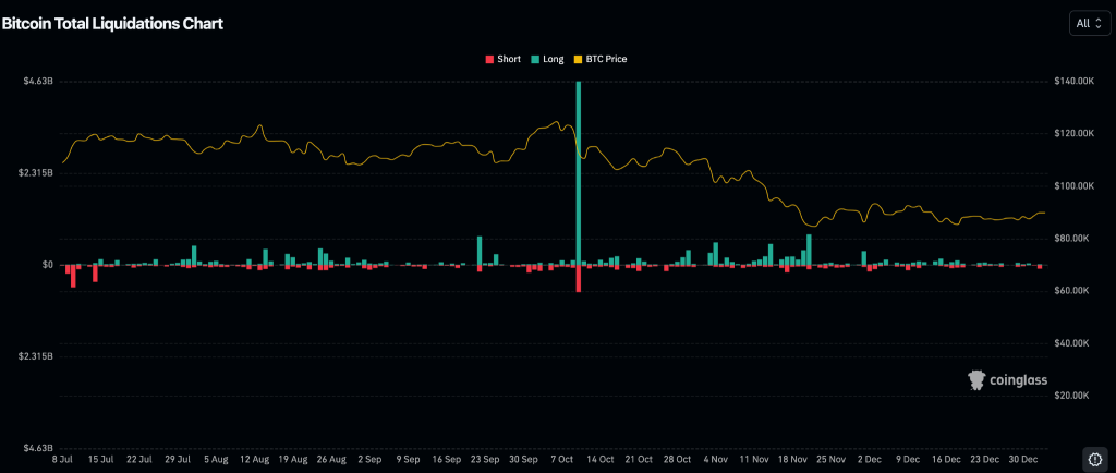 CME比特币期货图表在88,200美元处存在缺口。这类缺口通常会导致价格回归填补。正如某交易员所指出的,该缺口“极有可能被填补”。由于靠近下方流动性区域,价格可能短暂下探寻找支撑后再向上移动,这使得88,200美元成为值得关注的重要水平。