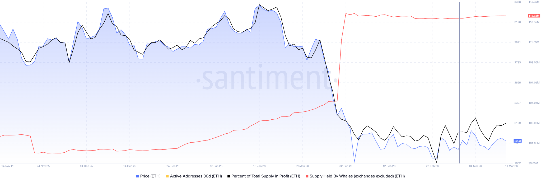 主要以太坊持有者在整个三月积累了价值约4.8亿美元的ETH,盈利头寸增加