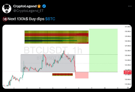 衡量价格变化速度与幅度的RSI已从超买区域回落,这为趋势延续创造了空间而未发出反转信号。更高时间框架上MACD维持正值,通常意味着当比特币价格守住趋势支撑时,上行倾向将持续。交易者密切关注120,000美元附近的现货买盘反应,坚守该位置将保持通道完整。若短暂下探115,000美元区域,可能测试系统化买家和ETF资金流的逢低需求,而非引发趋势破位。