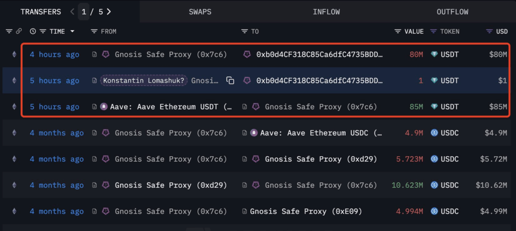 Lido创始人Konstantin Lomashuk从Aave借贷8500万USDT用于购买以太坊。
