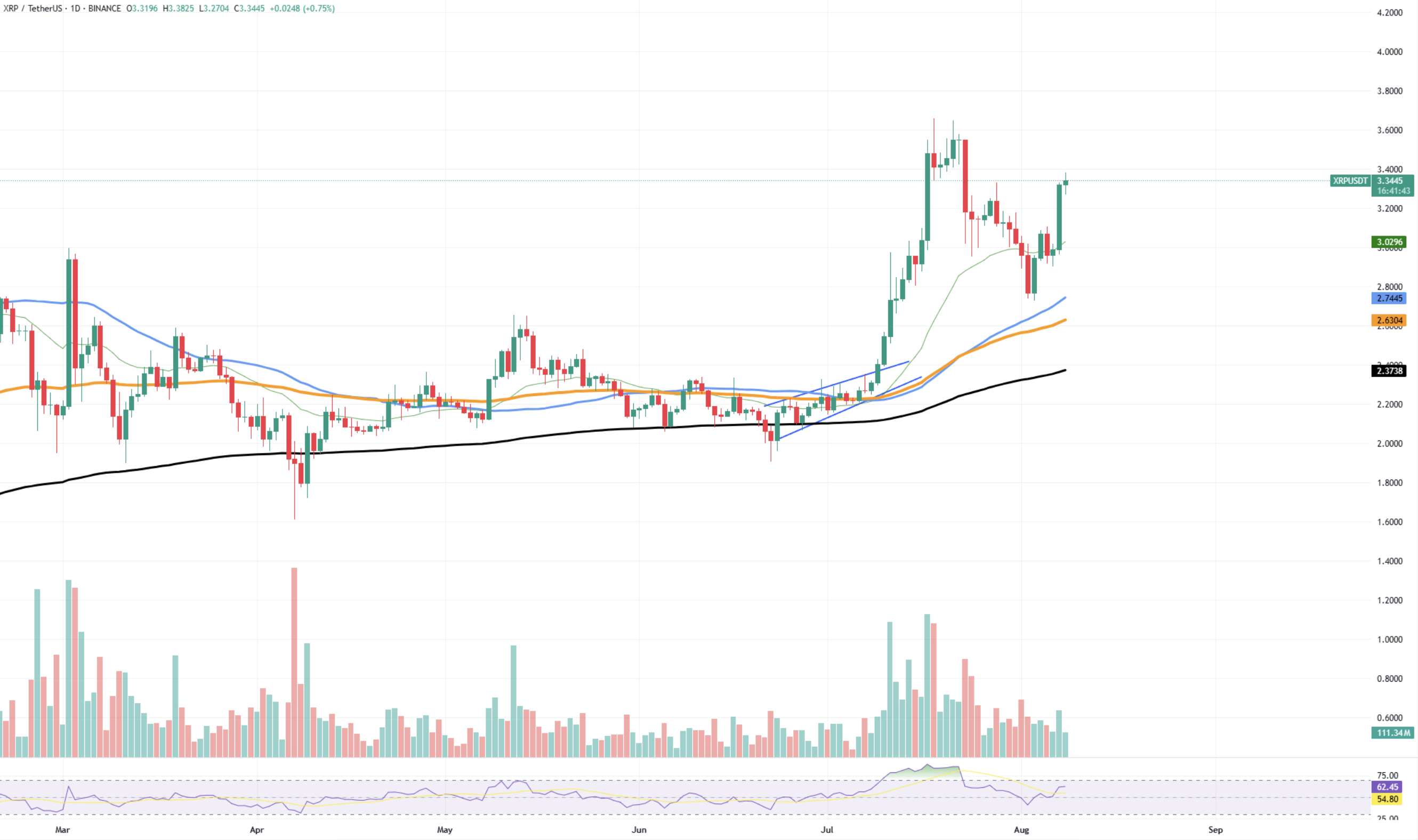 XRP近期经历了年内最显著的价格回升,过去24小时内交易量激增200%。其价格最初在2.30至2.80美元区间横盘整理,随后强势突破至3.60美元高位。虽然此后回落至26日均线支撑位3.03美元附近,但在买方介入下迅速反弹至3.30美元上方。