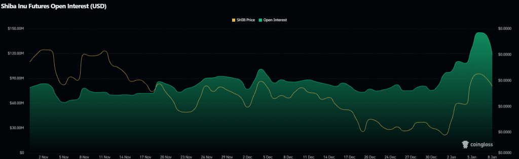 回顾2026年初,柴犬币未平仓合约在价格上涨35%前曾激增20%。如今该指标再度下降,交易者正密切关注柴犬币后续价格走向。