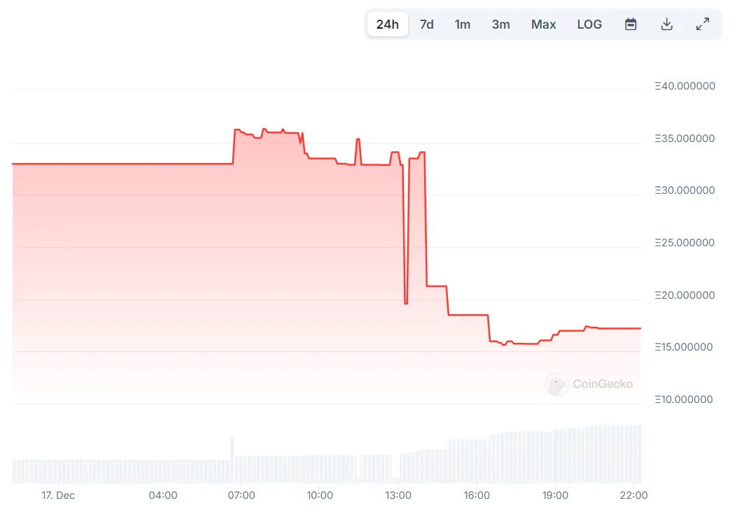 截至报道时,PENGU已从其发行价0.068美元下跌57%,显示出明显的抛售压力。令人意外的是,Pudgy Penguins系列NFT也经历了类似的下跌。数据显示,该系列NFT的地板价已降至17.2 ETH,尽管其日销售量激增了258%。