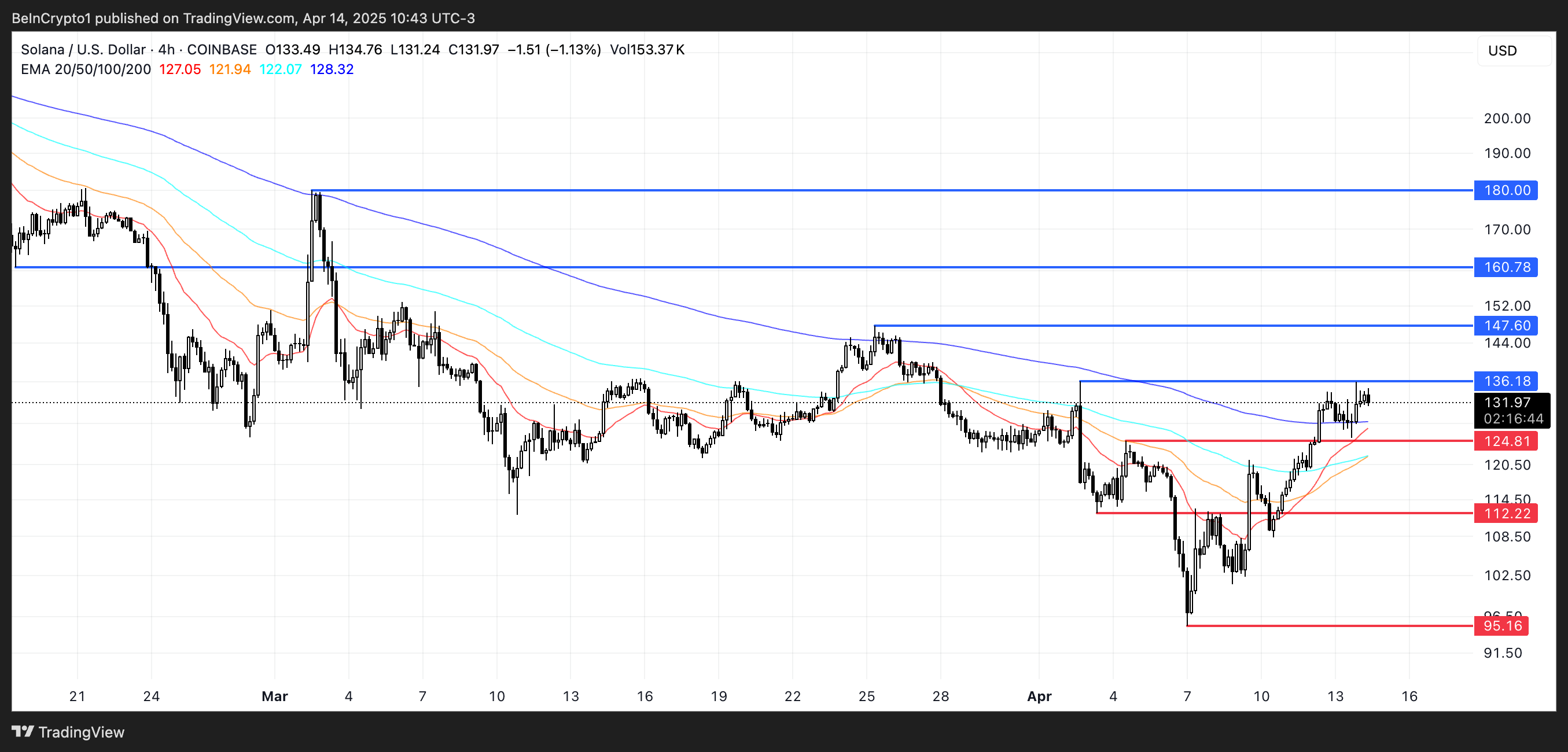 如果当前势头持续,Solana可能会在136美元处获得支撑,并有望冲击147美元和160美元。更强劲的反弹甚至可能将其推至180美元,这是3月初曾达到的水平。然而,如果反弹失去动力,SOL可能会重新测试124美元的支撑位。若跌破该水平,则可能进一步下探至112美元甚至95美元,具体取决于回调的幅度。