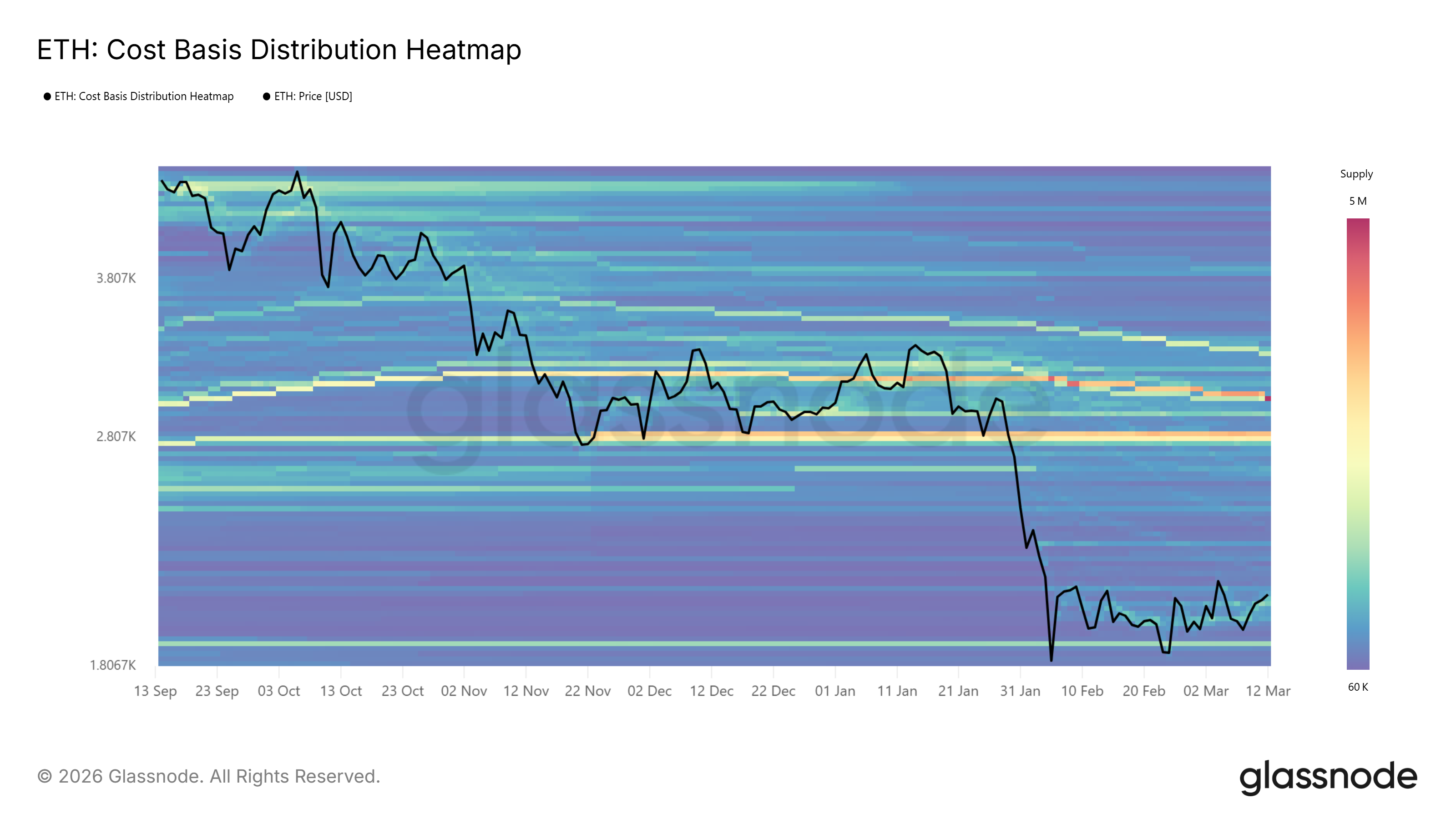 数据暗示价格存在向2800美元运行的潜在路径。值得注意的是,在2200美元至2800美元成本集群之间,历史供应分布相对稀疏,这意味着若价格突破当前震荡区间,可能更顺畅地进入该目标区域。