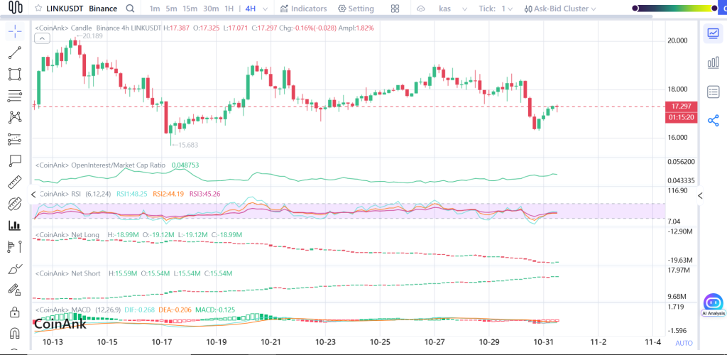 相反,若价格再次跌破16.80美元,市场或需在16-16.20美元支撑区域重整,甚至可能下探15美元中段再寻反弹。目前多头防守稳固,空头乏力,市场似在积蓄能量等待突破。一旦价格脱离当前震荡区间,11月或将为LINK持有者带来惊喜行情。