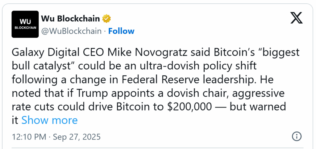 诺沃格拉茨指出这可能是最乐观的结果,但需要重大催化剂推动,例如美联储领导层变更。