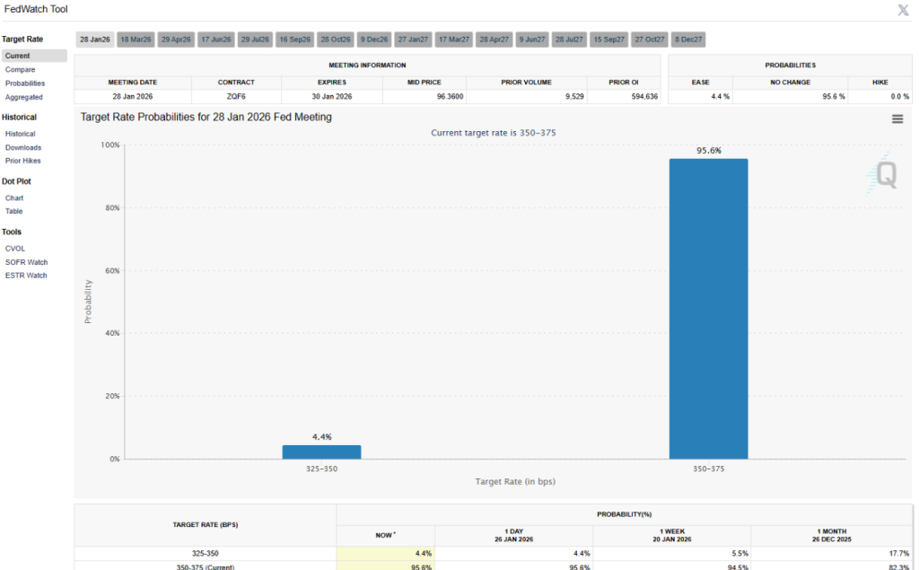 根据芝加哥商品交易所美联储观察工具,市场普遍预期利率将维持在当前区间。由于这一决定已被充分消化,市场注意力已从利率本身转移。