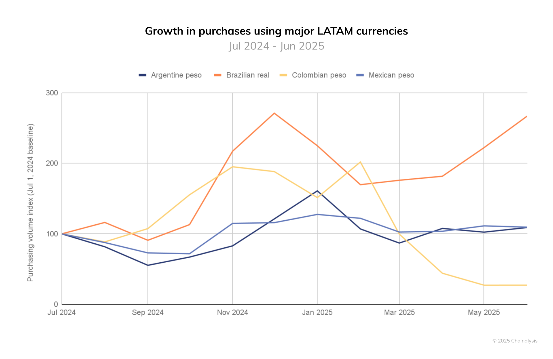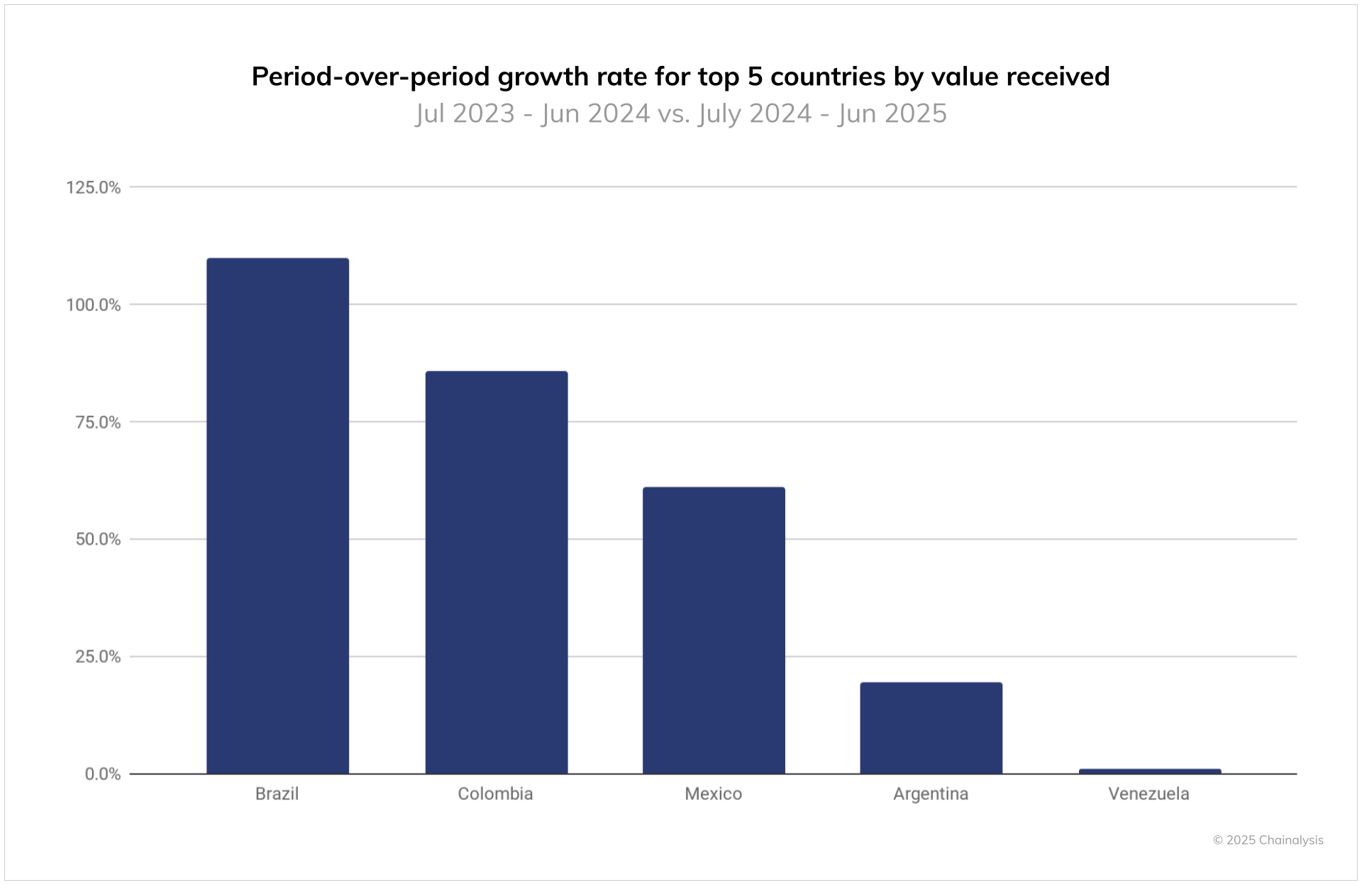 Source: Chainalysis#@当地专家强调,在经济不确定性背景下,数百万人依赖加密货币完成支付、跨境汇款及资产保护。Chainalysis报告认为,拉美市场增长既顺应全球趋势,也反映区域特有的经济压力驱动。