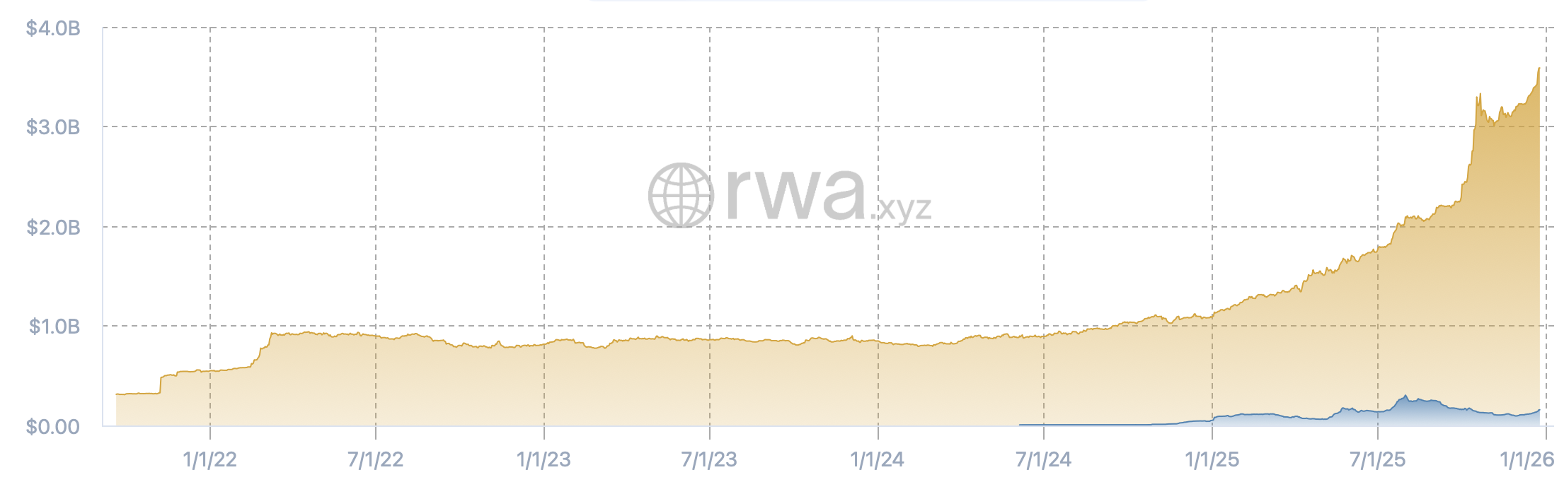 代币化大宗商品领域的势头紧随实物贵金属的涨势。黄金、白银和铂金均受益于强劲的需求,其中黄金在扩大数字市场方面扮演着尤为重要的角色。随着价格攀升,投资者日益转向代币化版本,这些版本提供了更便捷的准入和不受传统市场交易时间限制的连续交易。