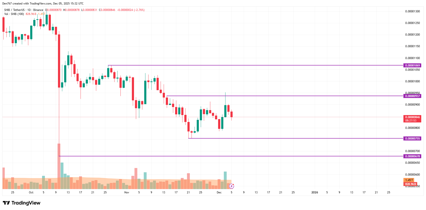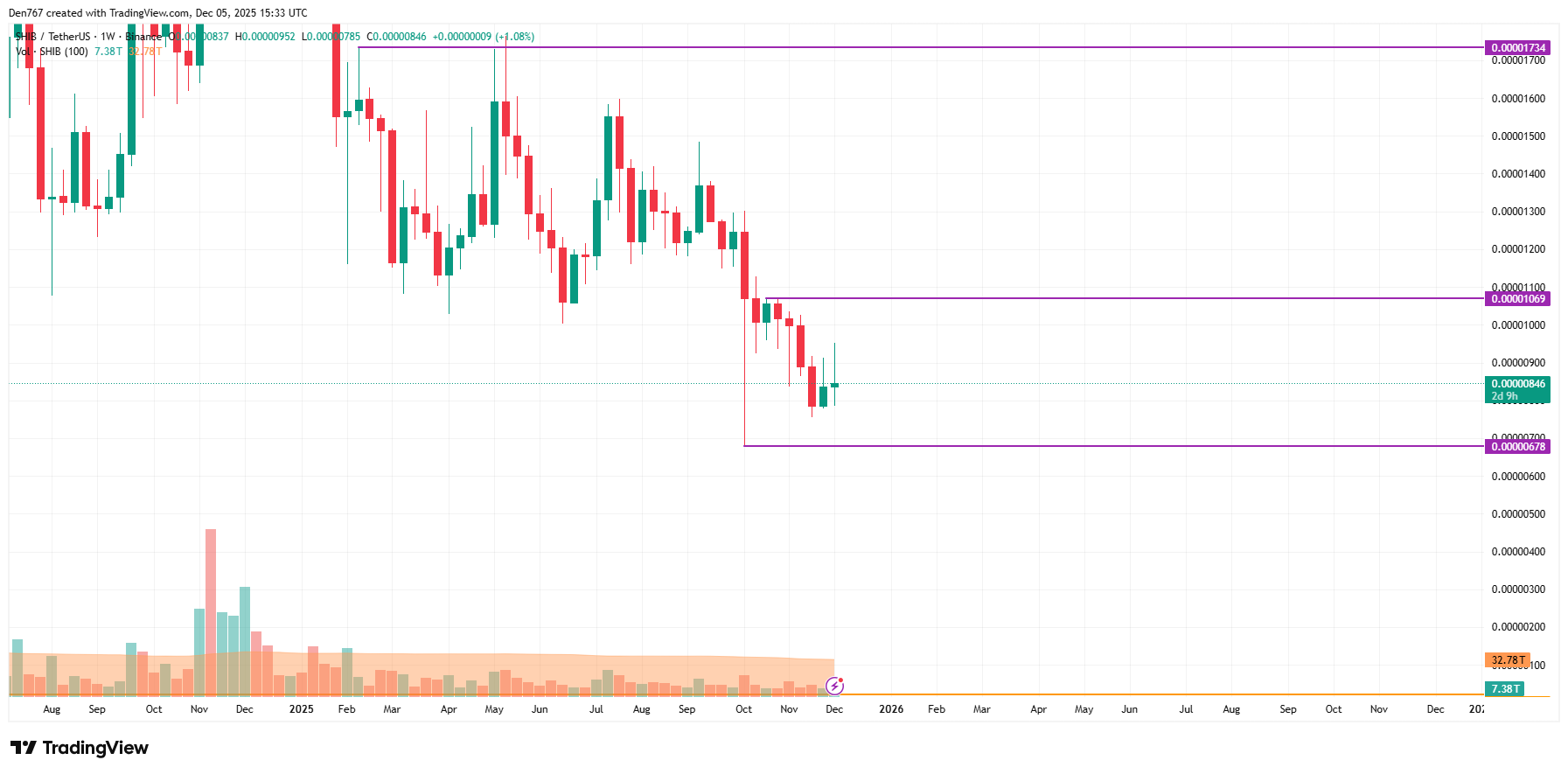 自昨日以来,SHIB价格已下跌4.34%。