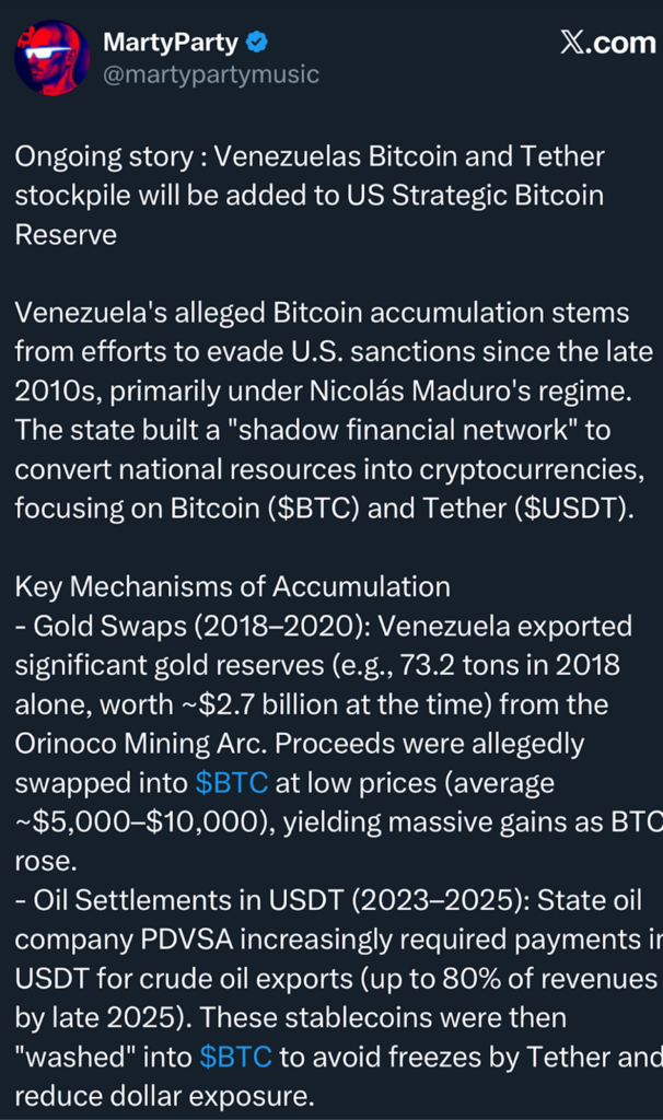 美国与委内瑞拉之间的紧张局势使石油重回焦点,这在意料之中。委内瑞拉拥有全球最大的石油储量之一。然而在石油故事背后,另一个问题正悄然引发关注,尤其是在比特币新闻领域。一些分析人士认为,一批比特币储备可能也是其中一部分。