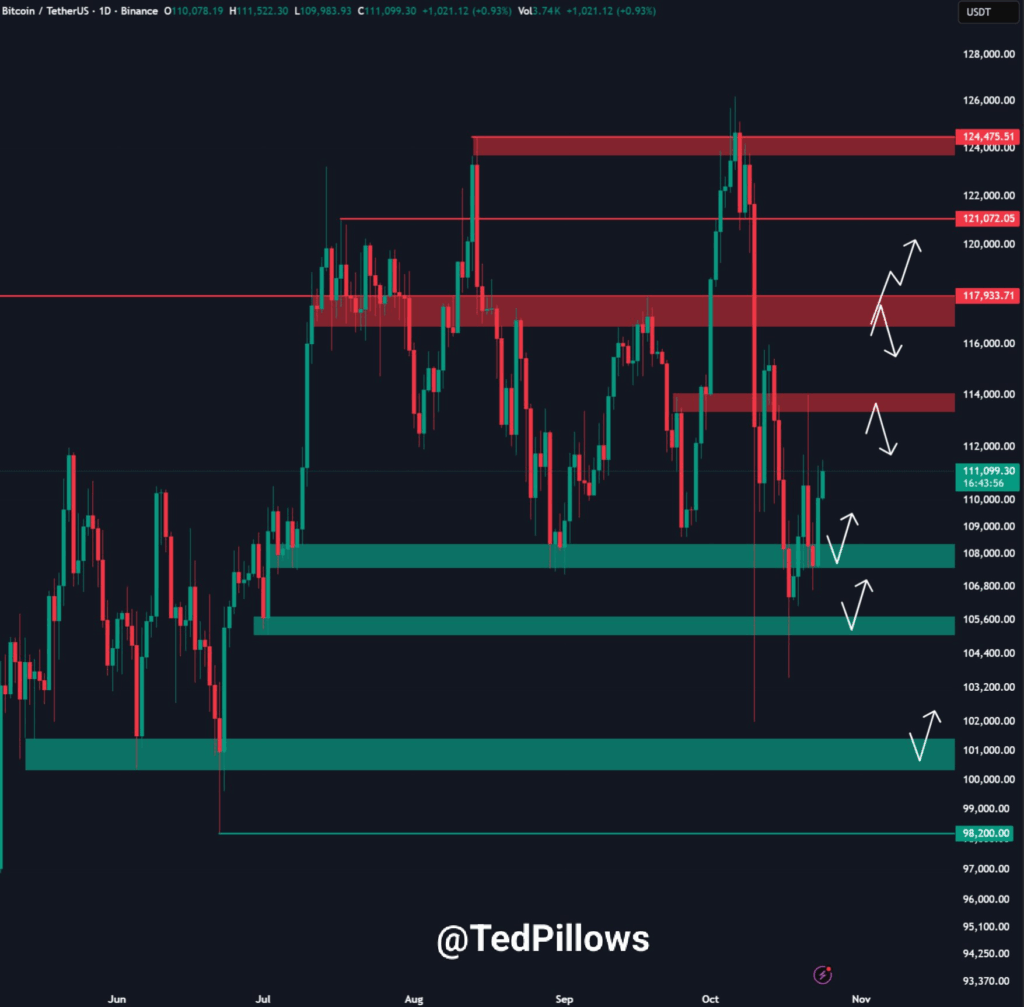 分析师Ted Pillows观察到比特币成功守住110,000美元支撑位,预测若能收复113,000-114,000美元区间将打开上行空间。期权市场已出现押注120,000美元看涨期权的交易。知名分析师Michael van de Poppe认为CPI数据超预期走低,预计比特币价格将在未来30天内创下历史新高。