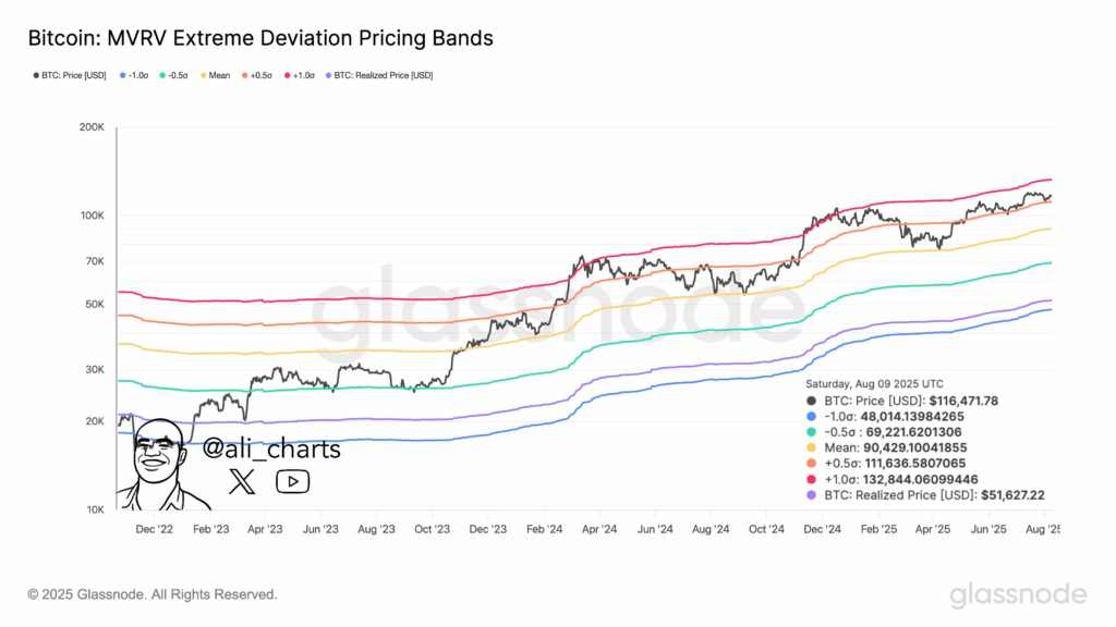 分析师阿里·马丁内斯根据MVRV定价带模型预测,若多头能守住11.2万美元支撑位,下一目标位将看至13.3万美元。数据显示上周新增364,126个比特币日活地址,创年内新高。