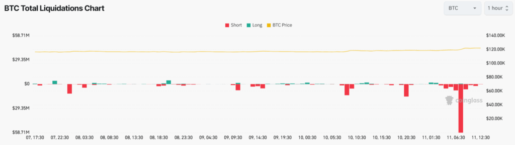 8月11日比特币价格剧烈波动导致1小时内近6000万美元空头爆仓。过去24小时全网加密资产爆仓3.5亿美元,其中空头占比达2.2亿美元。