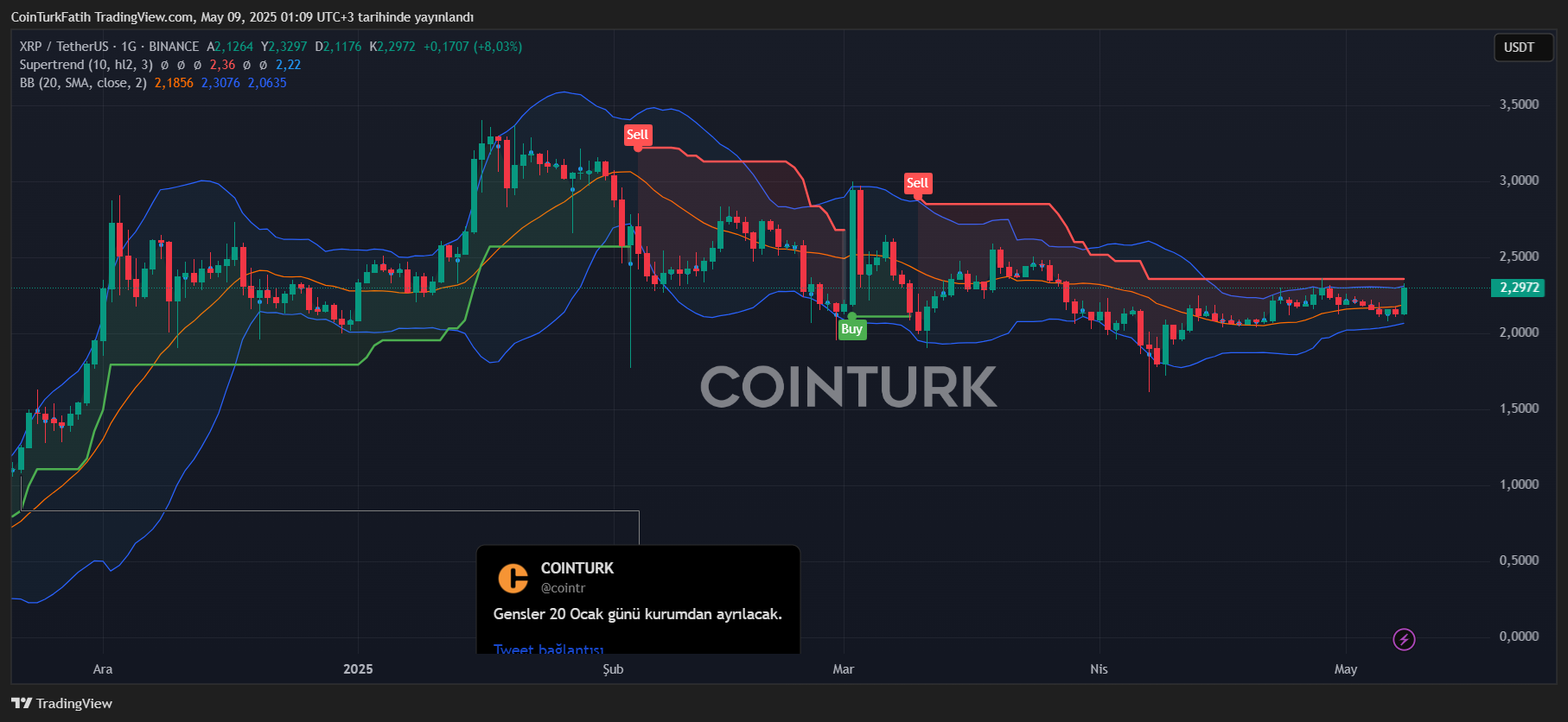 虽然XRP代币的价格基本未受这些事态发展的影响,但BTC价格回升至103,000美元推动XRP攀升至2.29美元。如果BTC保持强势,XRP可能进一步上涨至2.35美元和2.58美元。
