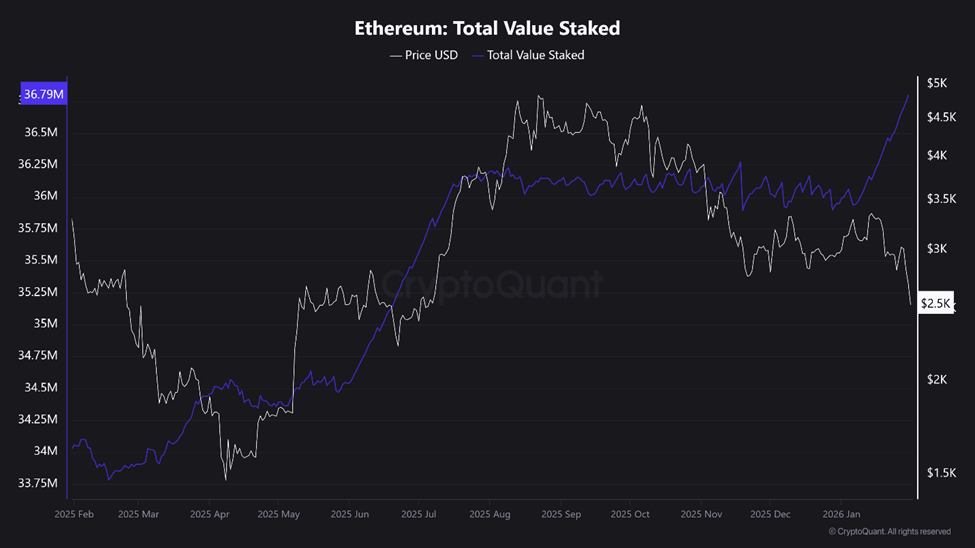 然而,一项以太坊指标却预示着健康的长期需求。网络总质押价值在刚结束的月份以超过3,674万ETH的新历史高点收官。